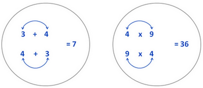 Tu avais déjà remarqué que dans l'addition aussi, on peut échanger les places. C'est comme si le + et la x était comme des tourniquets et que les nombres pouvaient tourner autour.