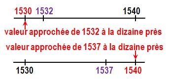 Donc on dira que 1530 est la valeur approchée de 1532 à la dizaine près.