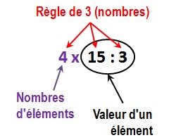 Cela s’appelle « la règle de 3 » car on écrit un calcul à 3 nombres (4 x 15 : 3)