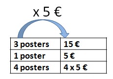 Exemple : si 3 posters valent 15 €, combien valent 4 posters ?