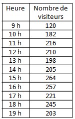 Combien y avait-il de visiteurs à 16h ? Sur le tableau, on le voit tout de suite.