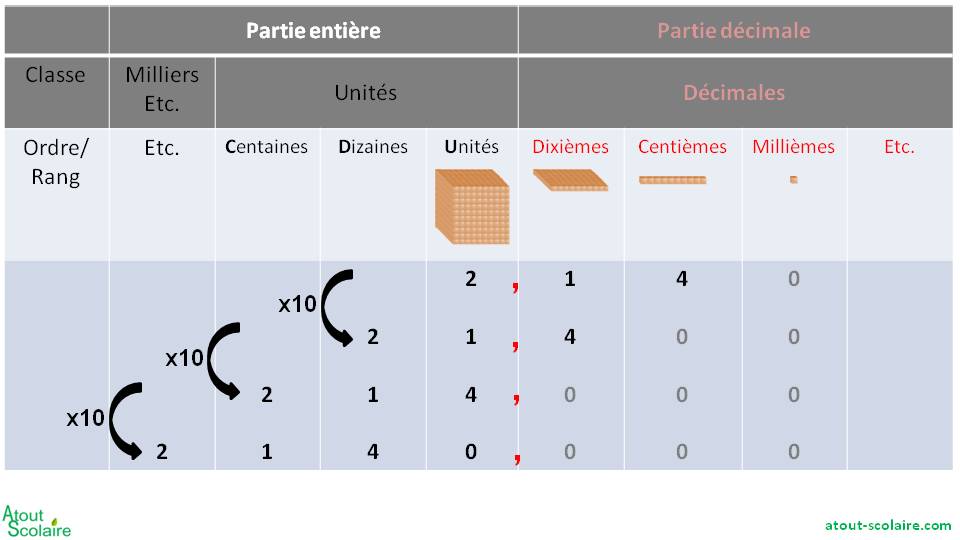 On a déjà vu que lorsque l'on multiplie par 10, cela transforme les unités en dizaines, les dizaines en centaines etc.
