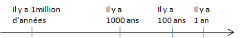 | Pour s’y retrouver dans cette immense période de temps, on découpe le passé de l’Homme en plus petites périodes chronologiques ("chronologique" veut dire classé dans le temps). | ![]() |