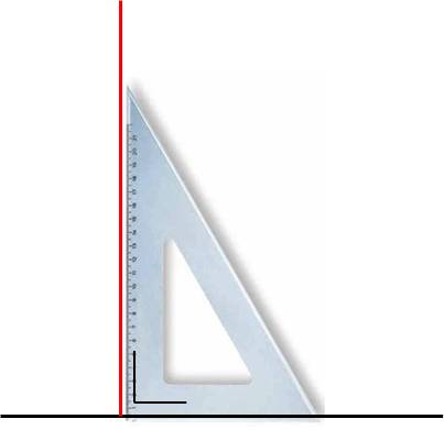 Tu peux tracer une droite perpendiculaire à une autre en utilisant une équerre, car cet instrument possède exprès deux bords perpendiculaires, c'est-à-dire formant un angle droit. Pour bien indiquer que les 2 droites sont perpendiculaires, on indique parfois le signe |_ dans l'angle droit. |