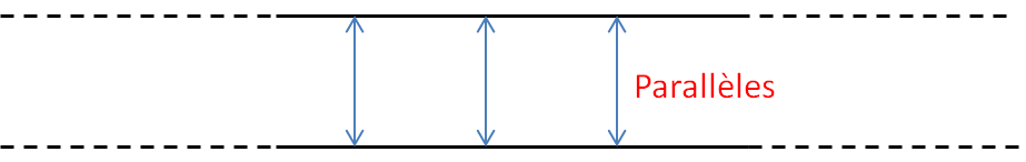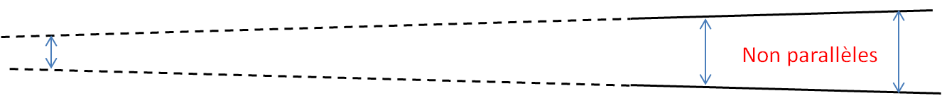Alors que si deux droites n’ont pas un écart constant, l’écart diminue de plus en plus d’un côté, et les 2 droites finiront par se rejoindre plus loin.