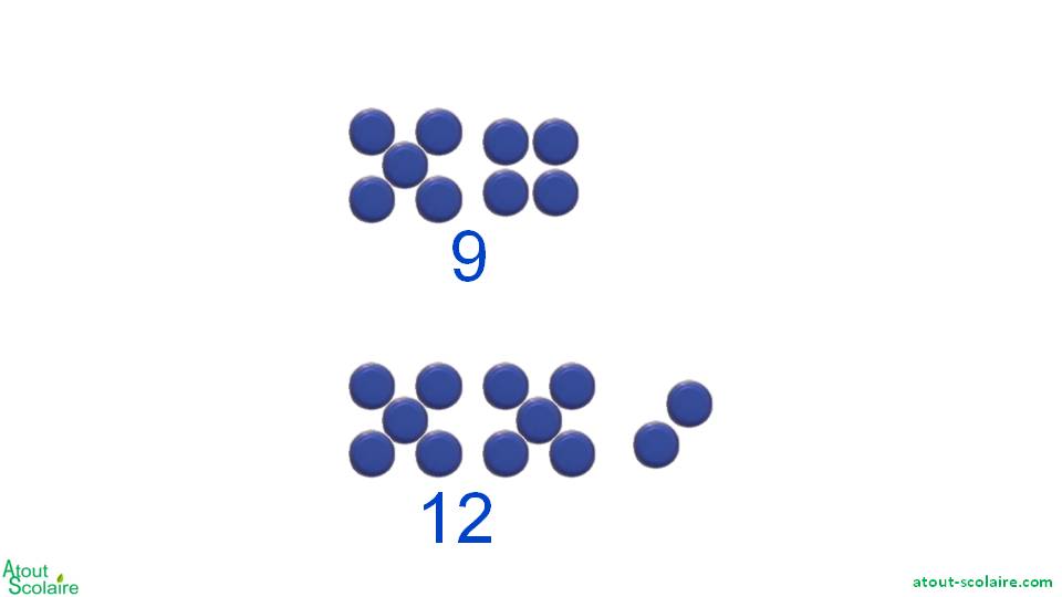 Par exemple si je compare 9 et 12, je vois tout de suite que 12 a plus de pions que 9.
