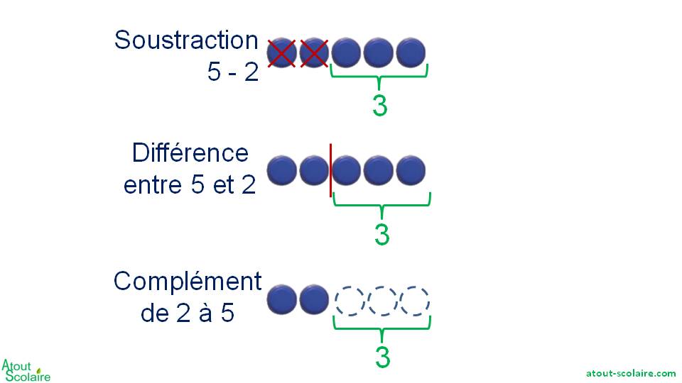 Donc la différence entre 5 et 2 est 3.