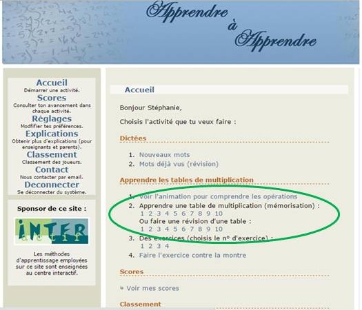 Pour cela, tu peux t'inscrire sur le site apprendre-a-apprendre.info et commencer par apprendre la table de multiplication par 2.