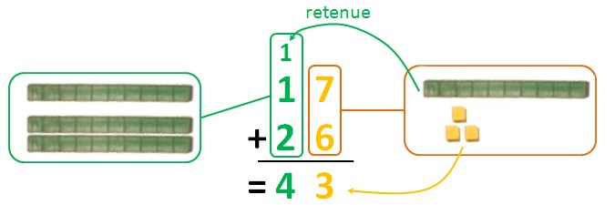 Si l'addition des unités donne plus de 10 unités, il va y avoir 1 dizaine en plus.