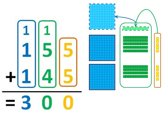 Pré-requis : les leçons "Poser une addition (mode opératoire)", et "Compter jusqu'à 1000" avec le système décimal/base 10.