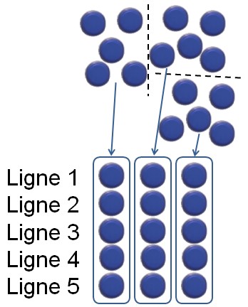 Diviser par 5, c'est donc partager en 5 paquets, donc répartir sur 5 lignes.